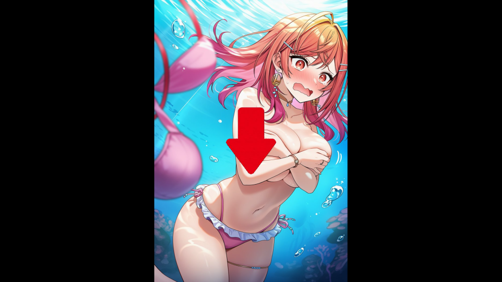 実際になさそうなビキニが脱げてしまうシチュはなかなか使えるのではないでしょうか。